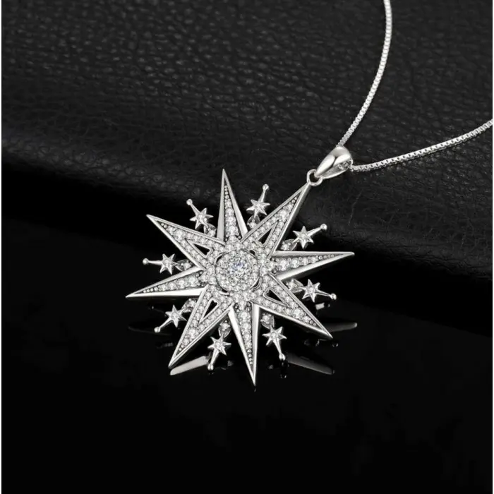 The exquisite “North Star” silver pendant captures the beauty and mystery of the night sky. Crafted from high-quality sterling silver and embellished with brilliant cubic zirconia stones, it radiates a delicate sparkle that draws every gaze. The North Star symbolizes direction, hope, and constancy — a perfect reminder to always follow your own path. With its refined craftsmanship and timeless design, this pendant makes a meaningful gift or a cherished addition to your personal jewelry collection. Ideal for both everyday wear and special occasions.